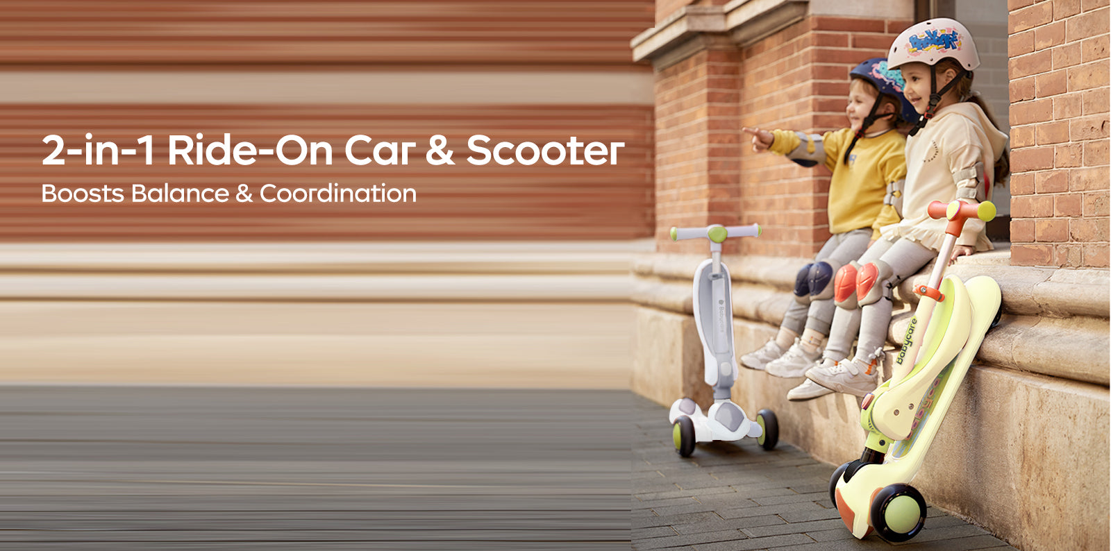 - Exercise with this 2-in-1 ride-on car and scooter to help children improve their sense of balance