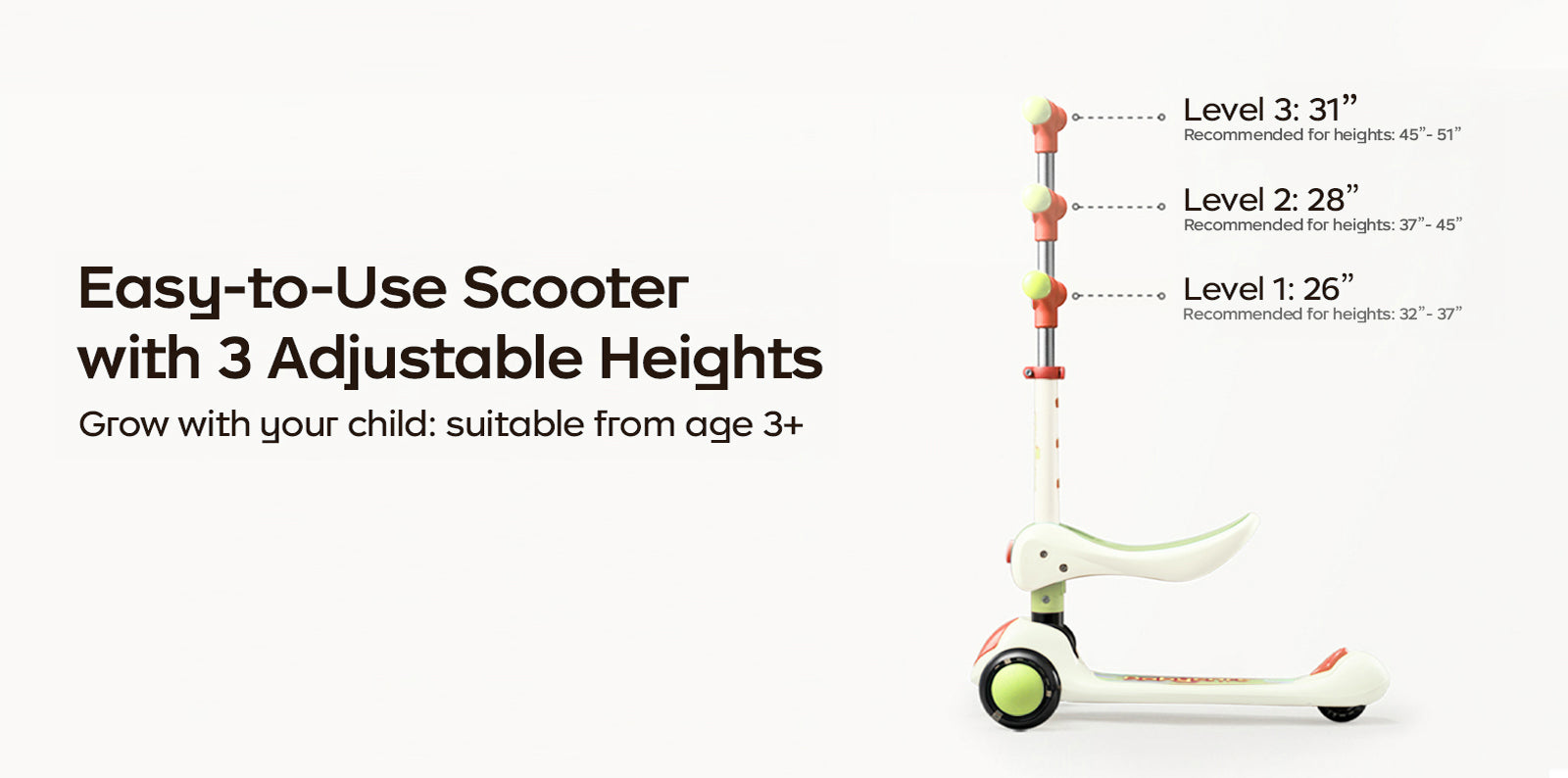 - Easy-to-use scooter with 3 adjustable height levels, , suitable until age 15