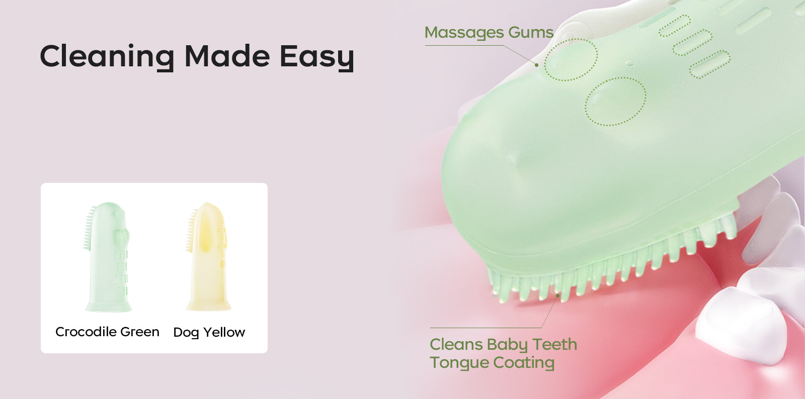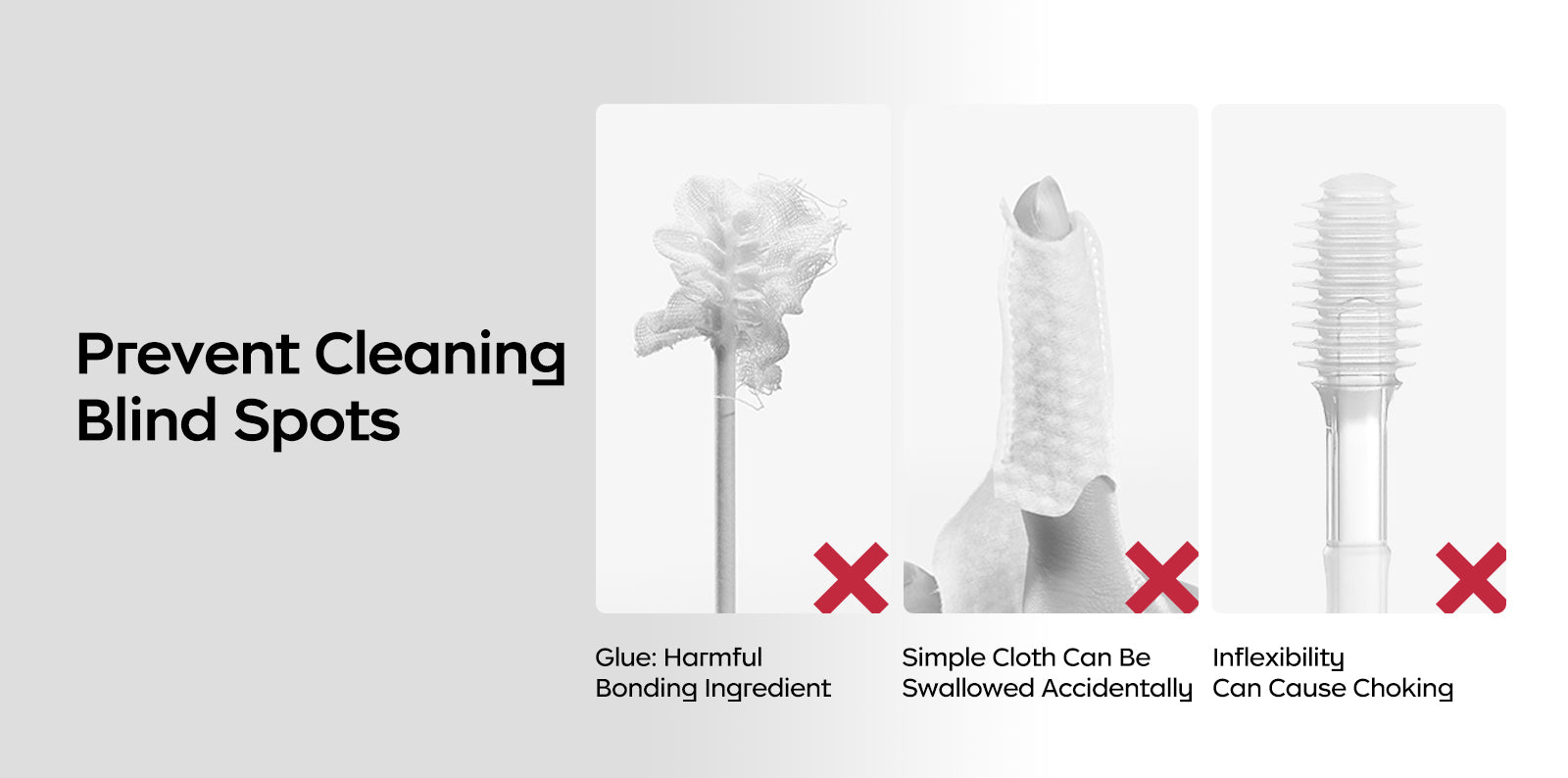 - Effortlessly cleans milk stains, tongue coating, and baby food in one swipe.