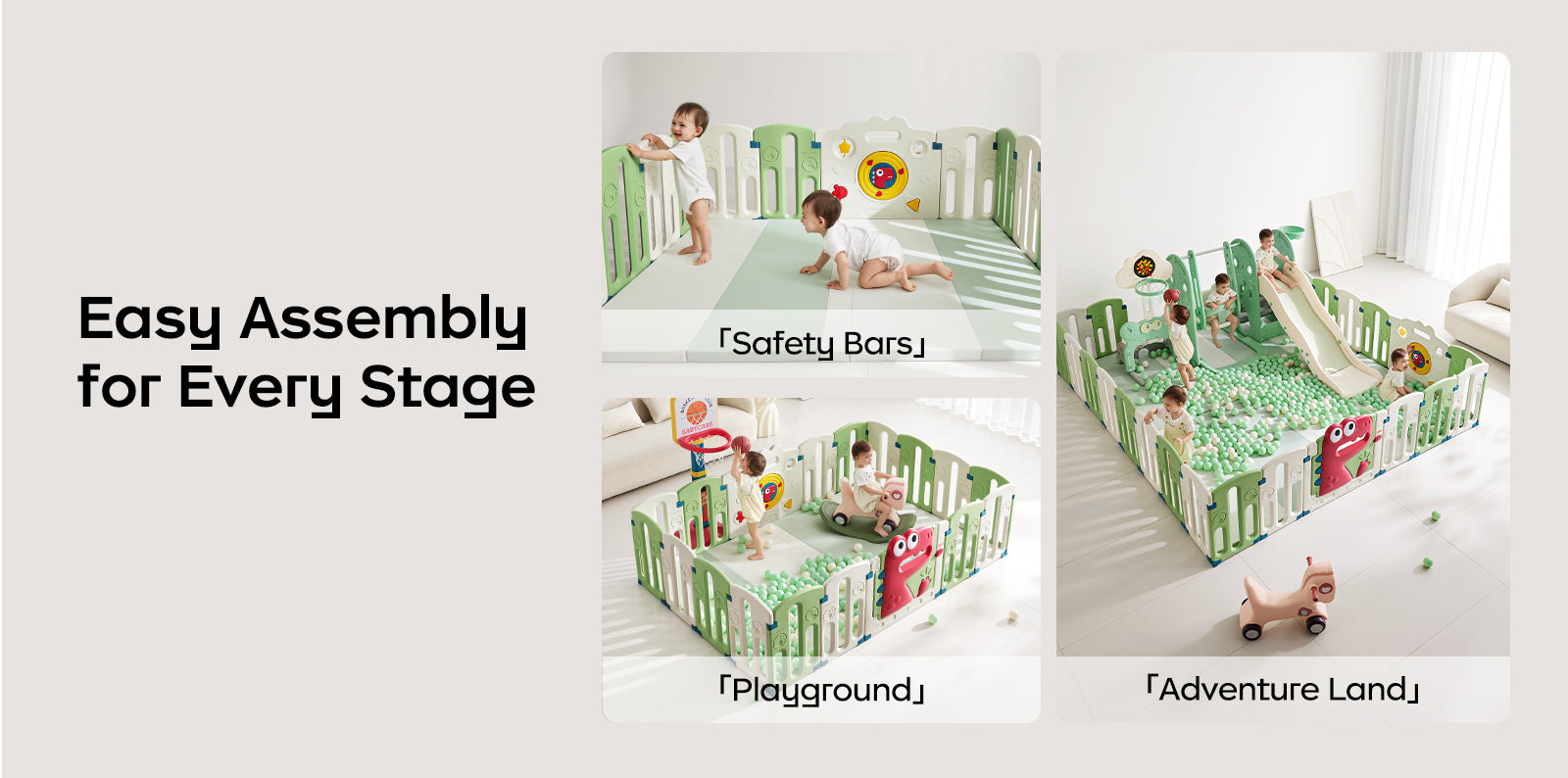- Easy to assemble: baby growth play park suitable for babies from 6 months to 3 years old and up, adjusts to different ages
