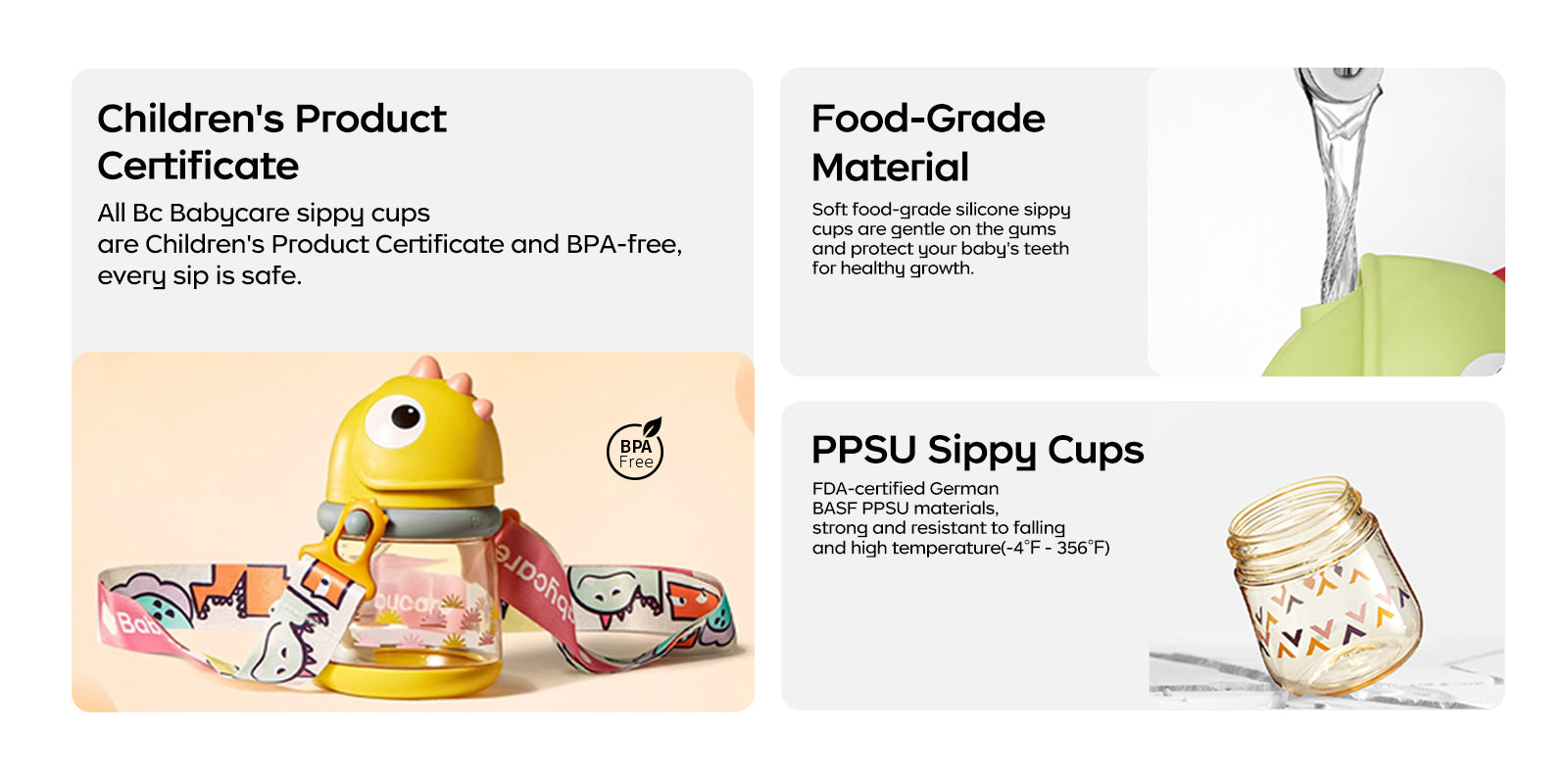 - 100% leak-proof seal - The well-sealed sippy cup won't leak even if it falls off the dining table or stroller.