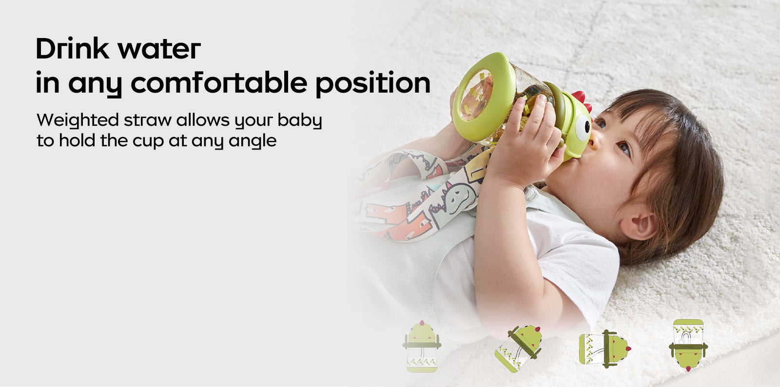 - Weighted ball straw cups make it easy for kids to drink water in any comfortable position.