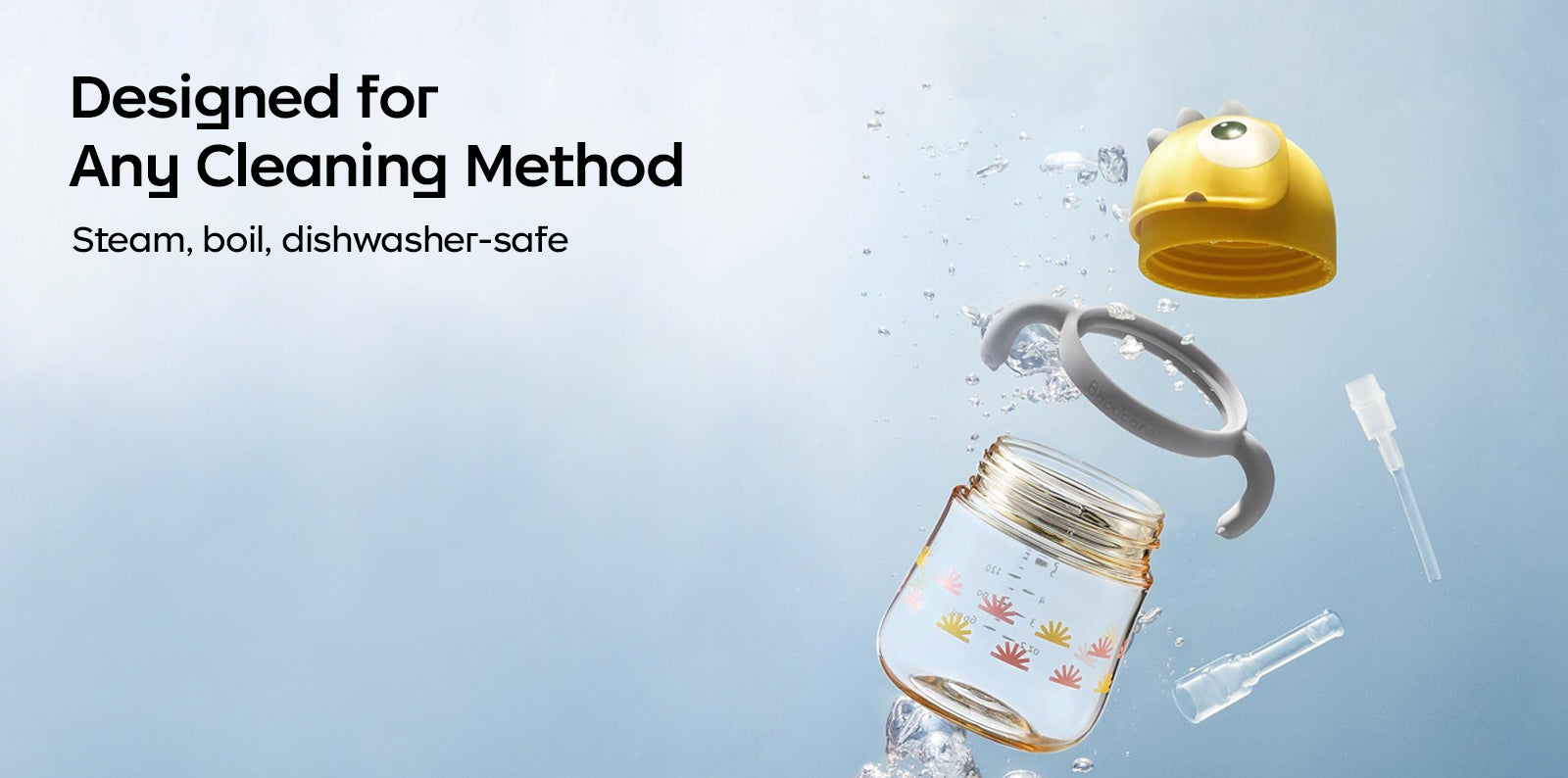 This water cup (5oz) features a detachable handle, which makes it convenient for parents to clean it regularly. If you directly hold the handle to pick up the cup without securing the lid tightly, it may cause the cup body to detach and result in damage to the cup. It is recommended to first secure the lid tightly before picking up the water cup.