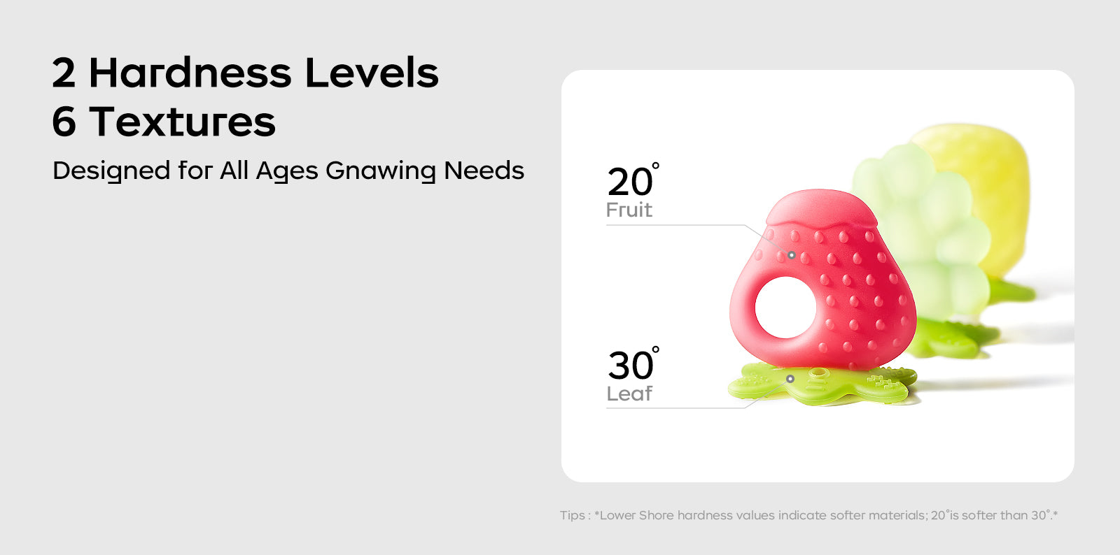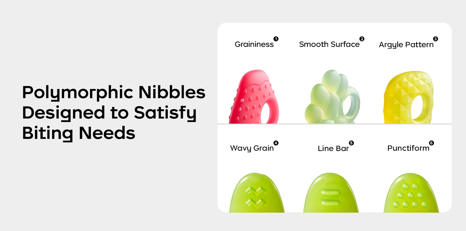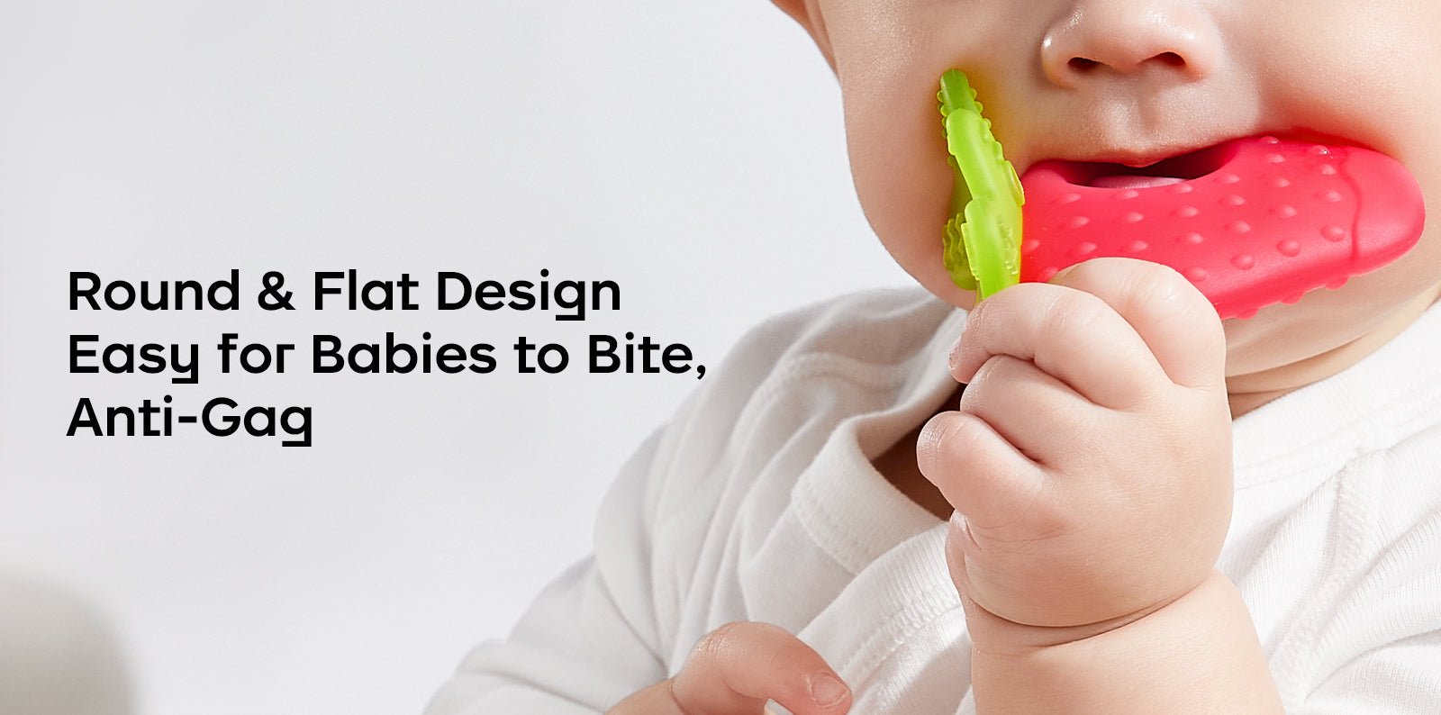 - Ergonomic Shape: Babies love to bite the round and flat design.