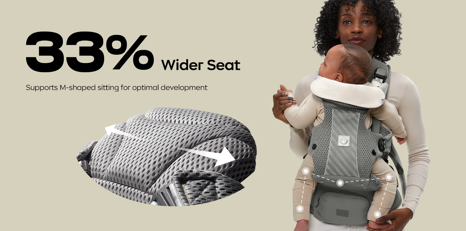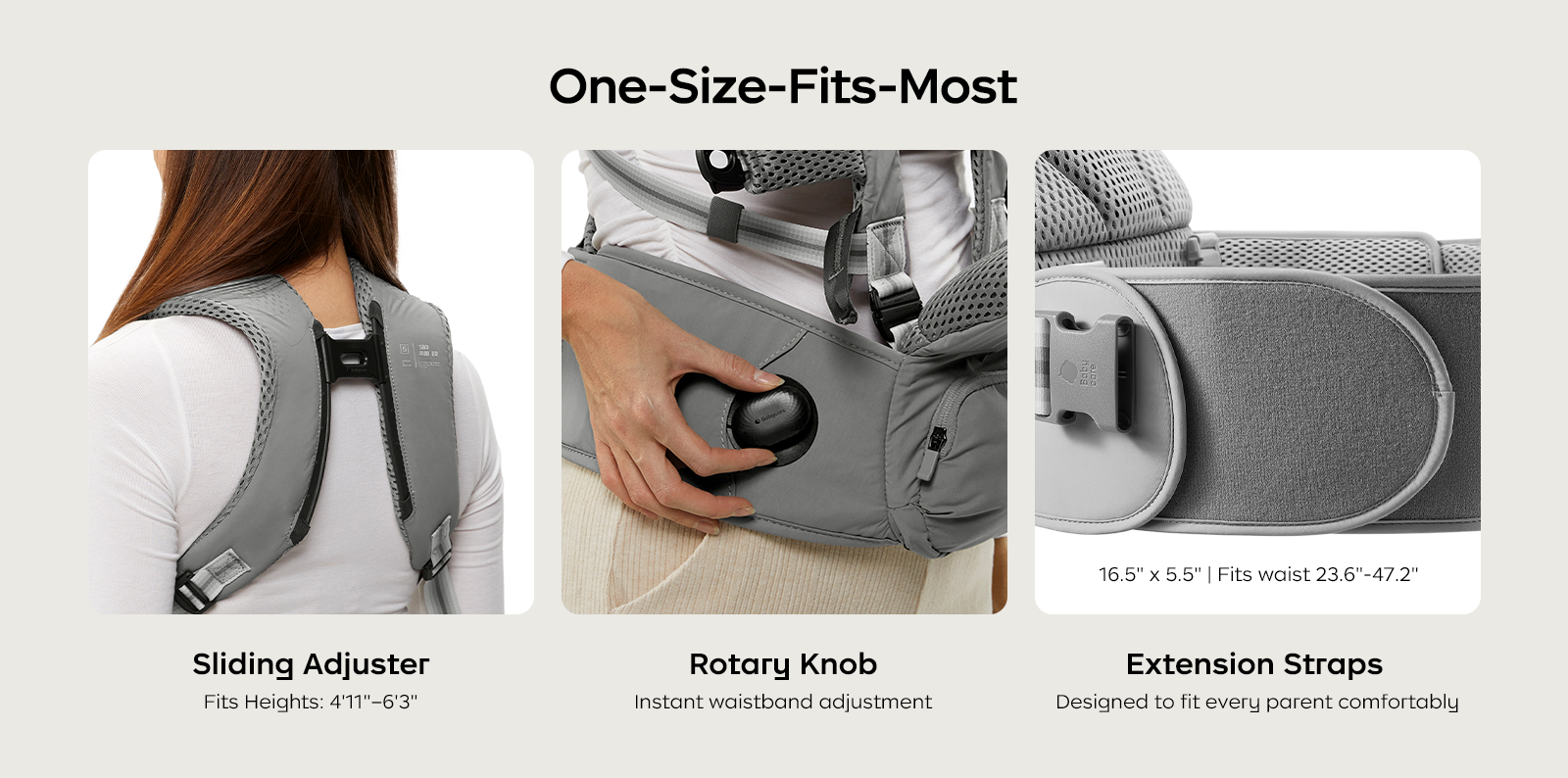 - Adjustable weight-transfer belt: Wear high on waist for newborns, lower on hips for toddlers.
