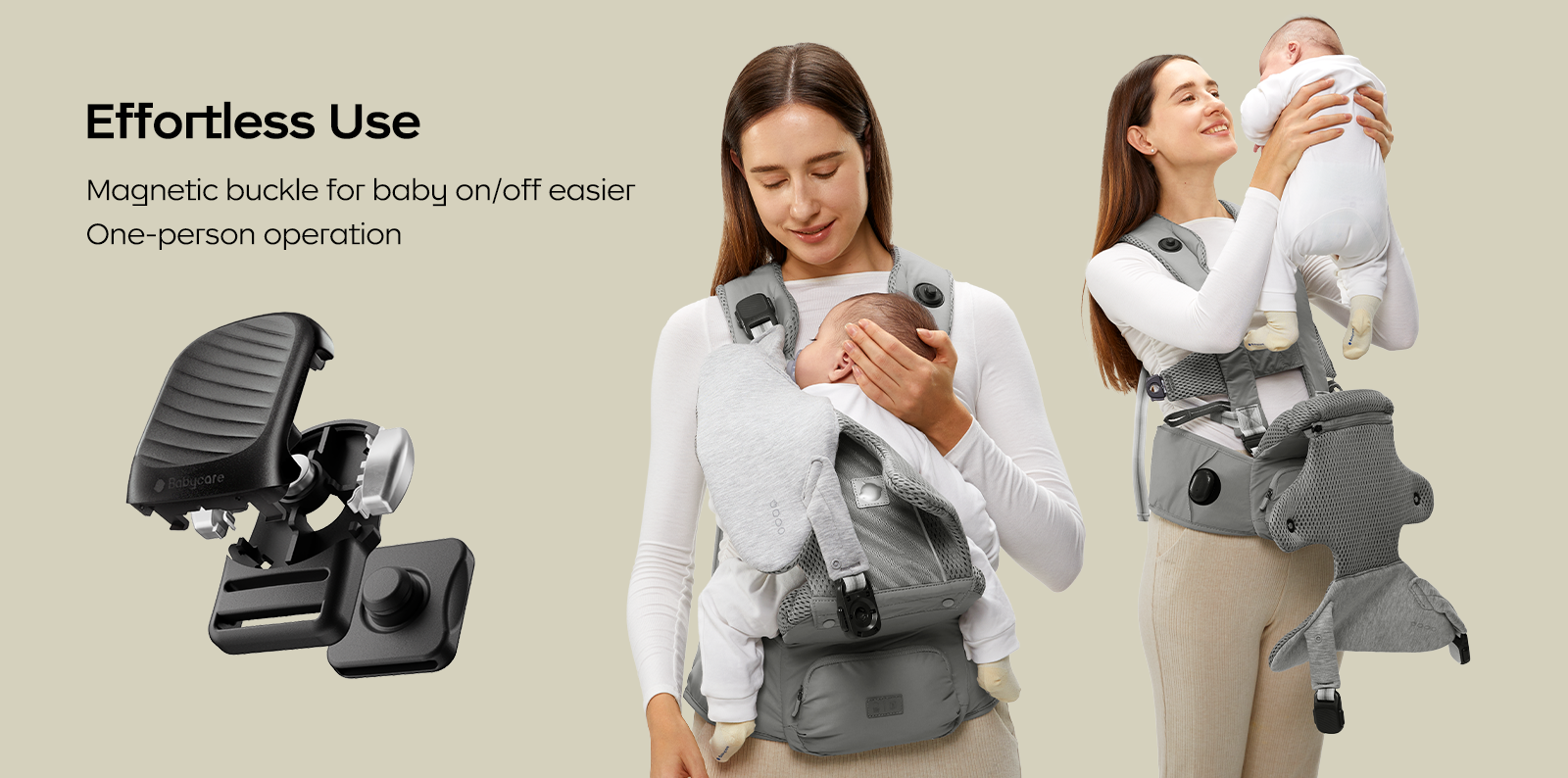 - At home: Use the waist seat for sitting/cradling or wear the carrier hands-free for chores/strolls.