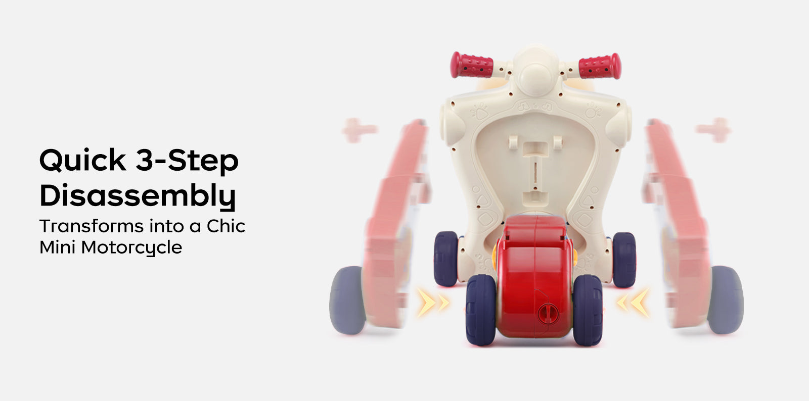 - Quick 3-Step Disassembly: Transforms into a Sleek Mini Motorcycle