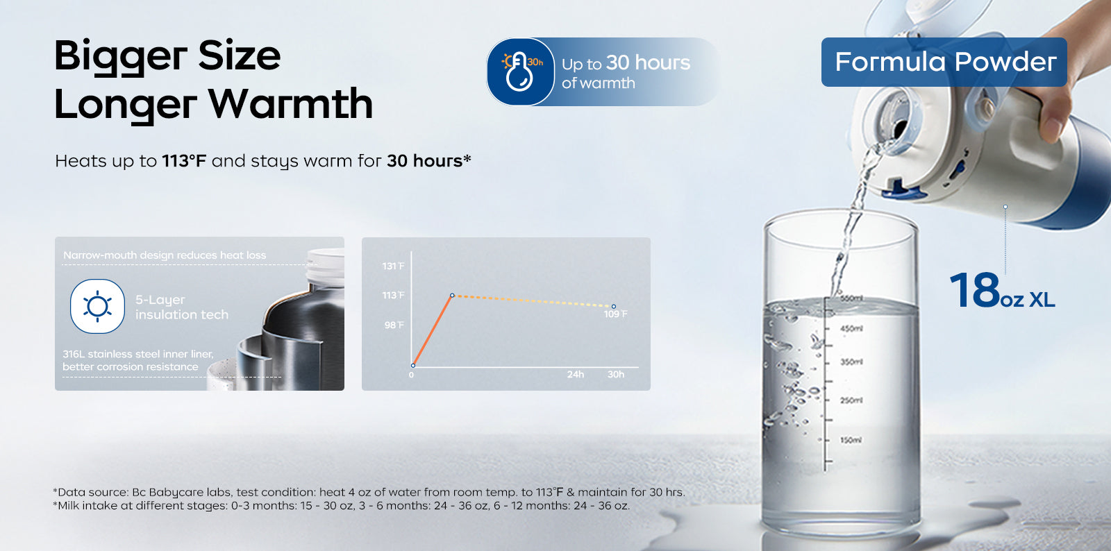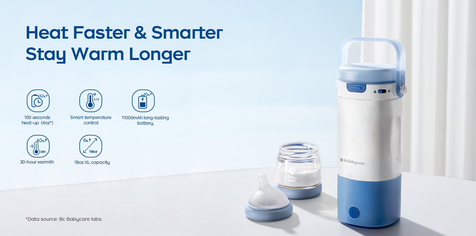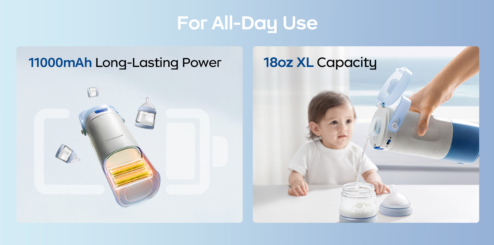 - Long-Lasting Power: With an 18oz XL capacity and a powerful 11,000 mAh battery, it delivers up to 30 hours of warmth. Perfect for night feedings.One water refill lasts all night.