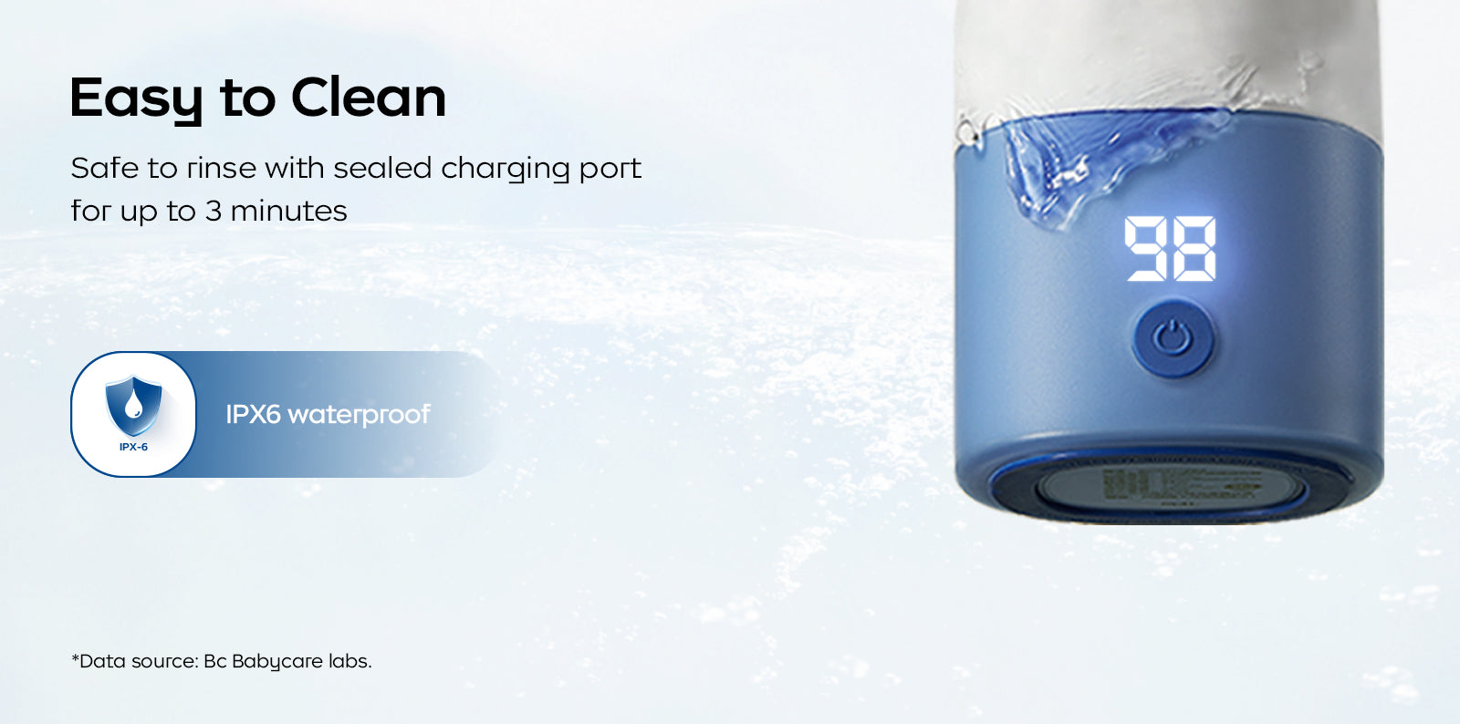 IPX6 waterproof and easy to clean. The charging port is sealed, so it's safe to rinse it for up to 3 minutes.