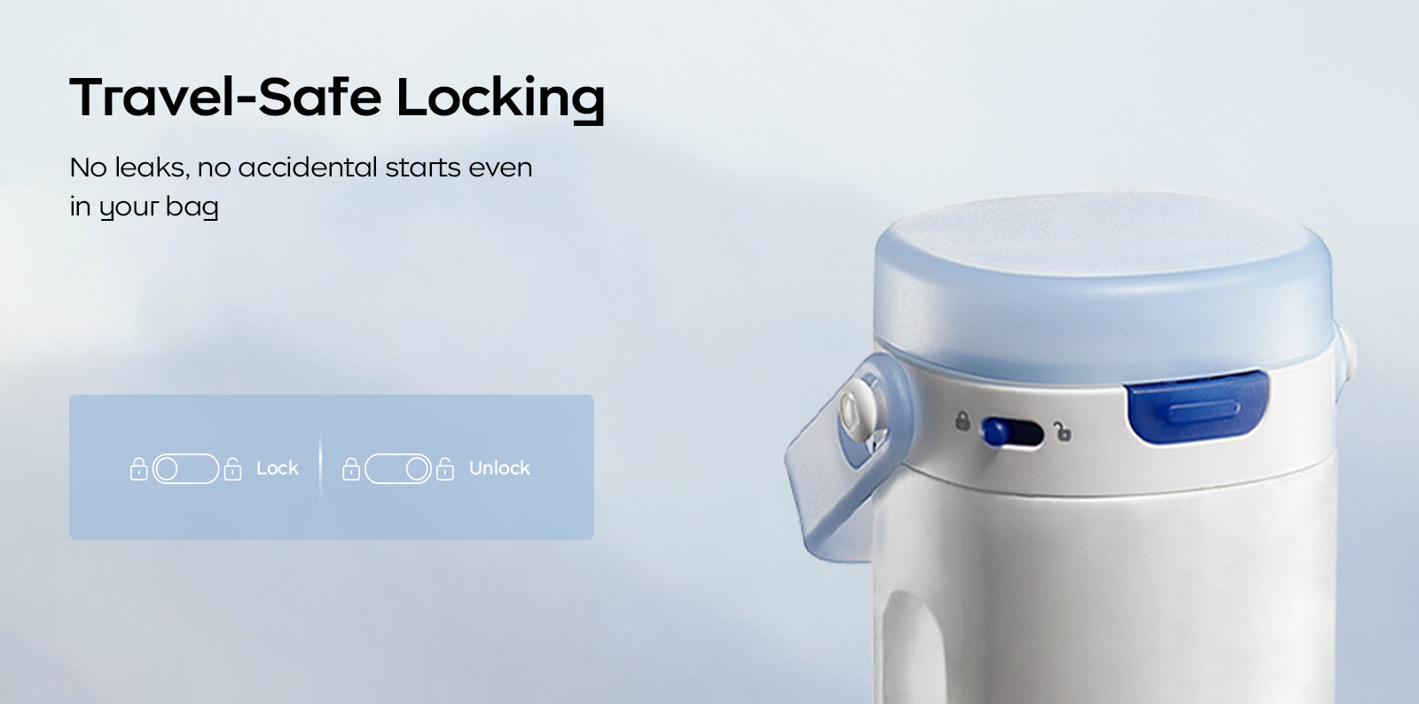 Equipped with a travel-safe lock, no leaks, no accidental starts even inside your bag.