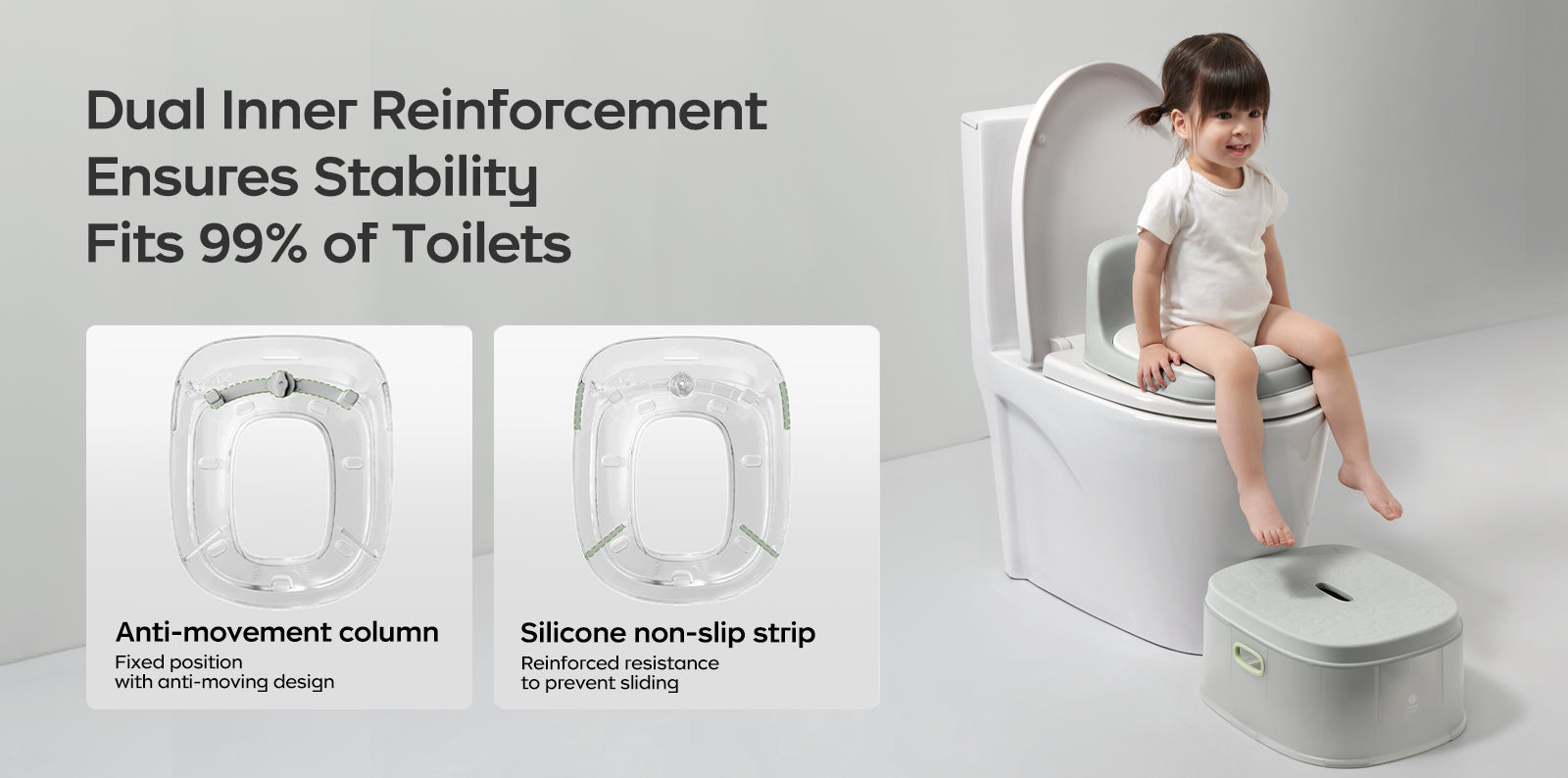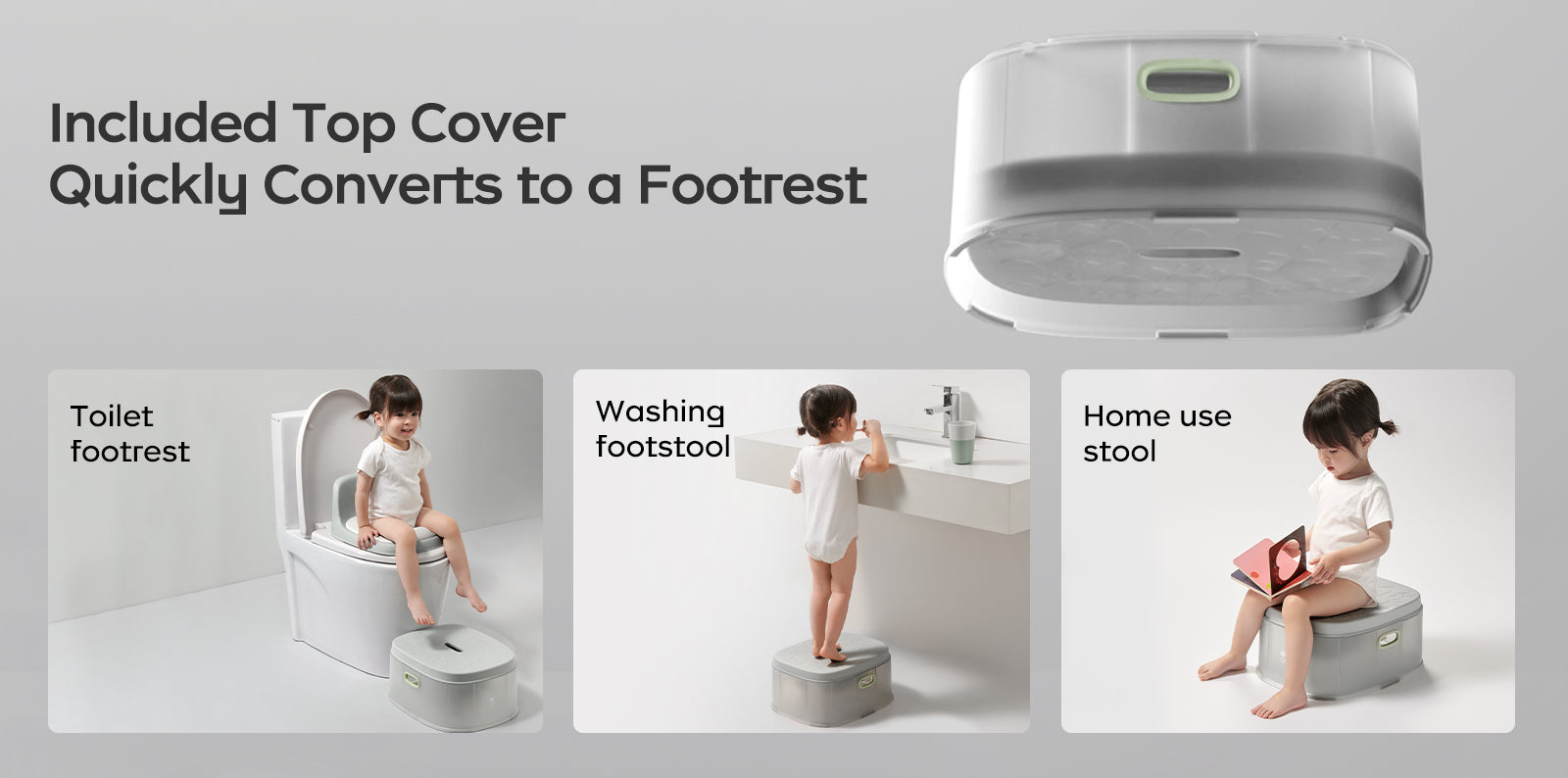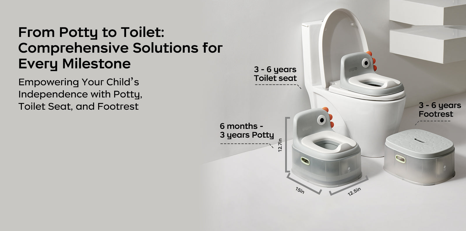 - 3-in-1 potty: combining potty, toilet seat, and footrest, suitable for babies aged from 6 months to 6 years old.
