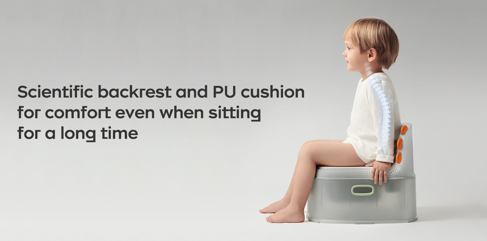- Scientific backrest for comfort even when sitting for a long time: fit the baby's spinal curve and help spine development.