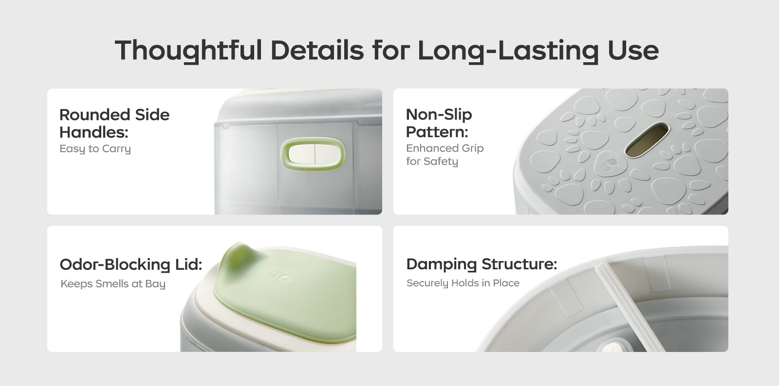 - Non-slip design, double reinforcement: silicone non-slip strips on the base and anti-movement columns for ease of mind.