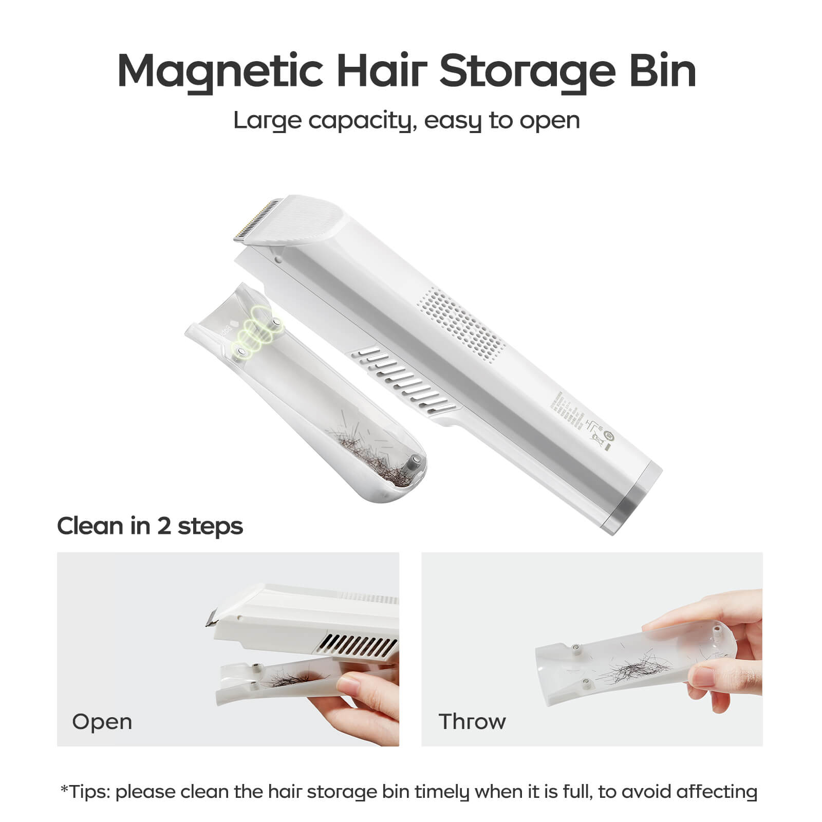 - Low noise and vibration, no startling or causing distress: 45.6dB soft and clear motor, with stable and low vibration.